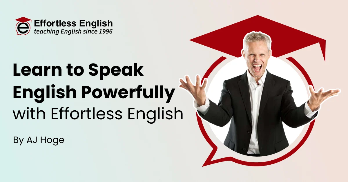 AJ Hoge est le professeur d'anglais N°1 au monde ! Professeur d’anglais américain reconnu mondialement pour avoir développé une approche révolutionnaire, naturelle et motivante de l’apprentissage de l’anglais. Sa méthode Effortless English (littéralement « L’anglais sans effort ») vise à parler couramment sans passer par la grammaire traditionnelle ni l’apprentissage académique classique.